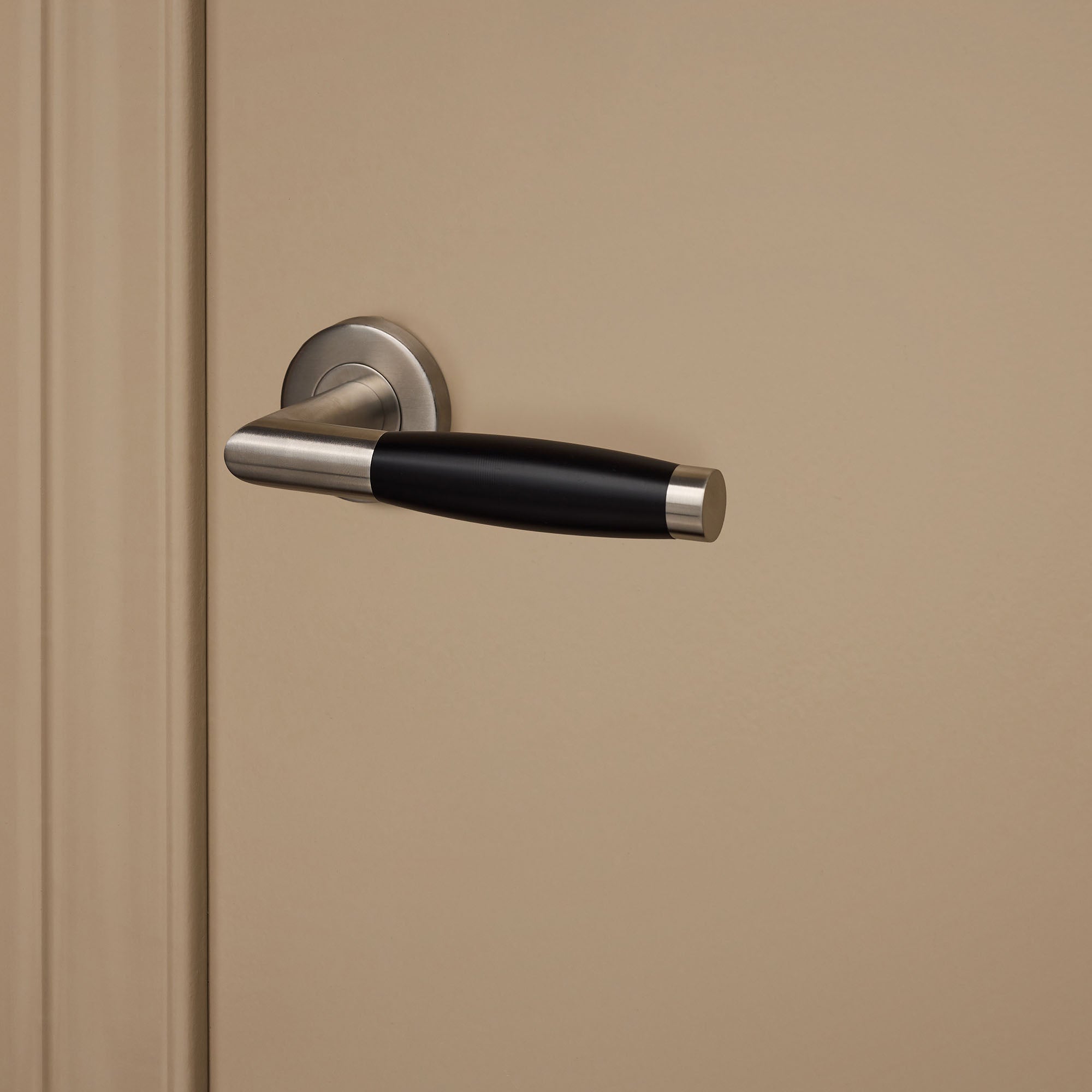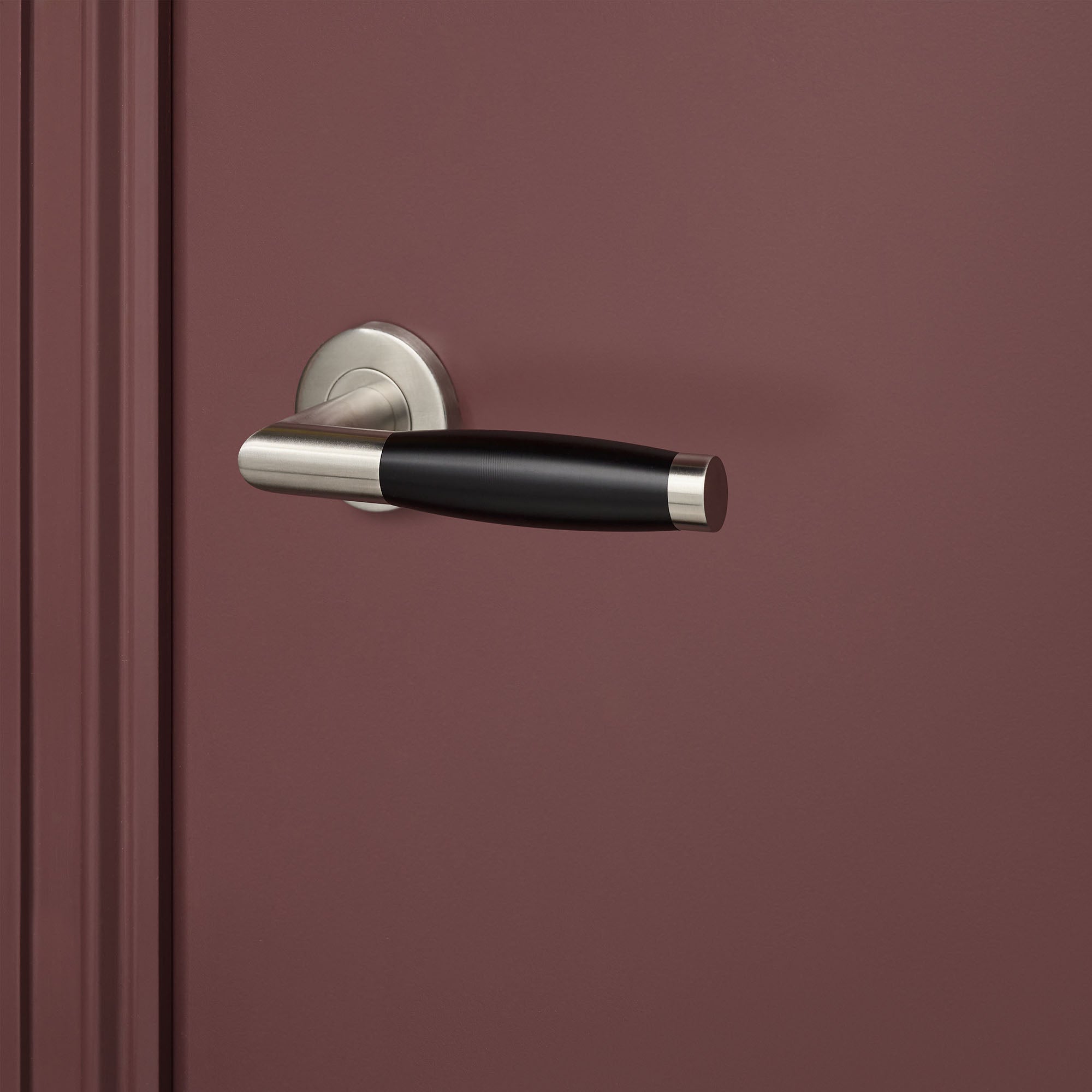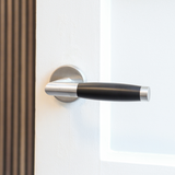 Het ronde rozet zorgt voor een verfijnde uitstraling die de deurklink een klassieke charme geeft. De RVS afwerking geeft het ontwerp een moderne, luxe uitstraling die zich uitstekend aanpast aan verschillende interieurstijlen, van minimalistisch tot klassiek. Het ontwerp combineert functionaliteit met esthetiek voor een tijdloze look.