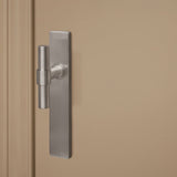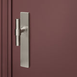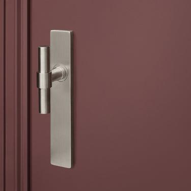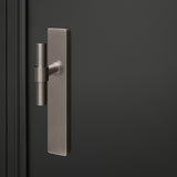 Het rechthoekige schild zorgt voor een krachtige omlijsting van de klink en maakt het totaalplaatje compleet. De vorm ligt prettig in de hand en voelt solide aan. In een interieur met industriële accenten of een minimalistische basis komt deze deurklink uitstekend tot zijn recht.