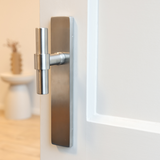 Deze uitvoering zonder sluiting of sleutelgat is geschikt voor ruimtes waar geen slot nodig is, zoals een woonkamer of werkkamer. De RVS afwerking is niet alleen duurzaam en slijtvast, maar ook makkelijk te combineren met andere metalen details in huis.