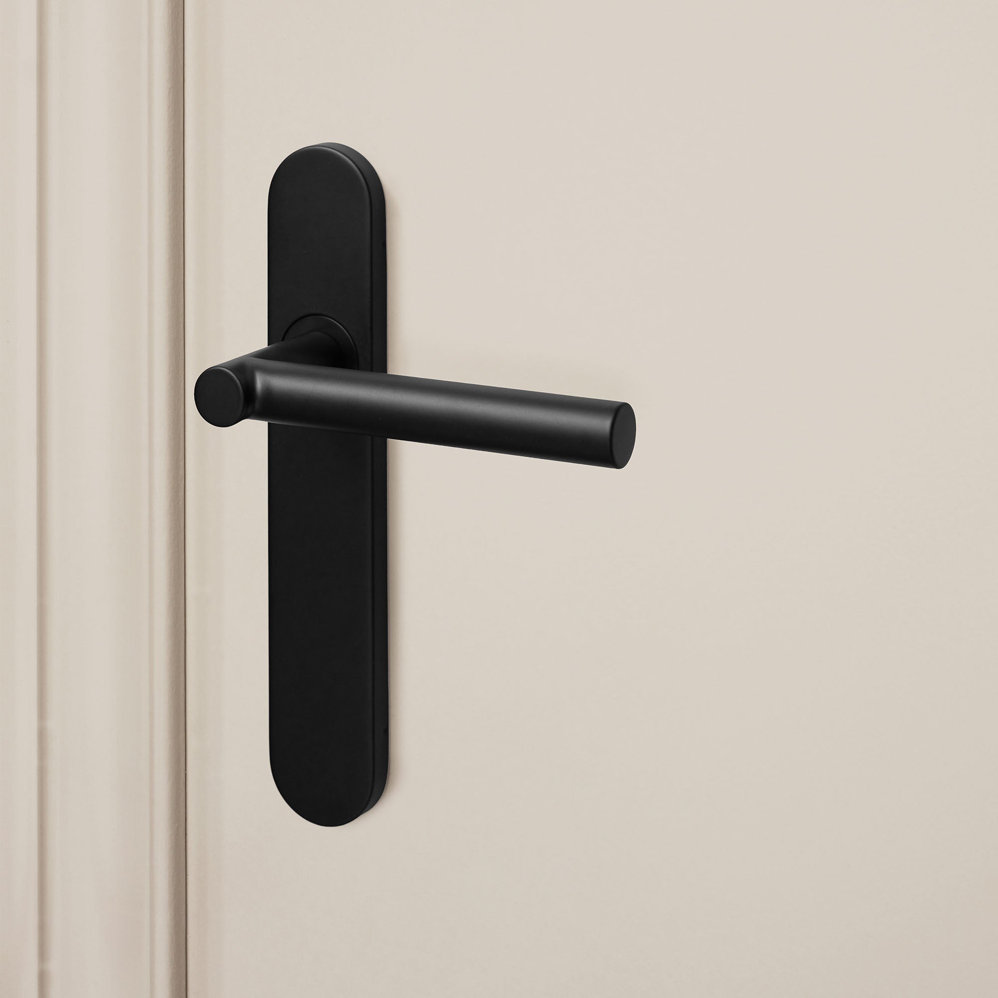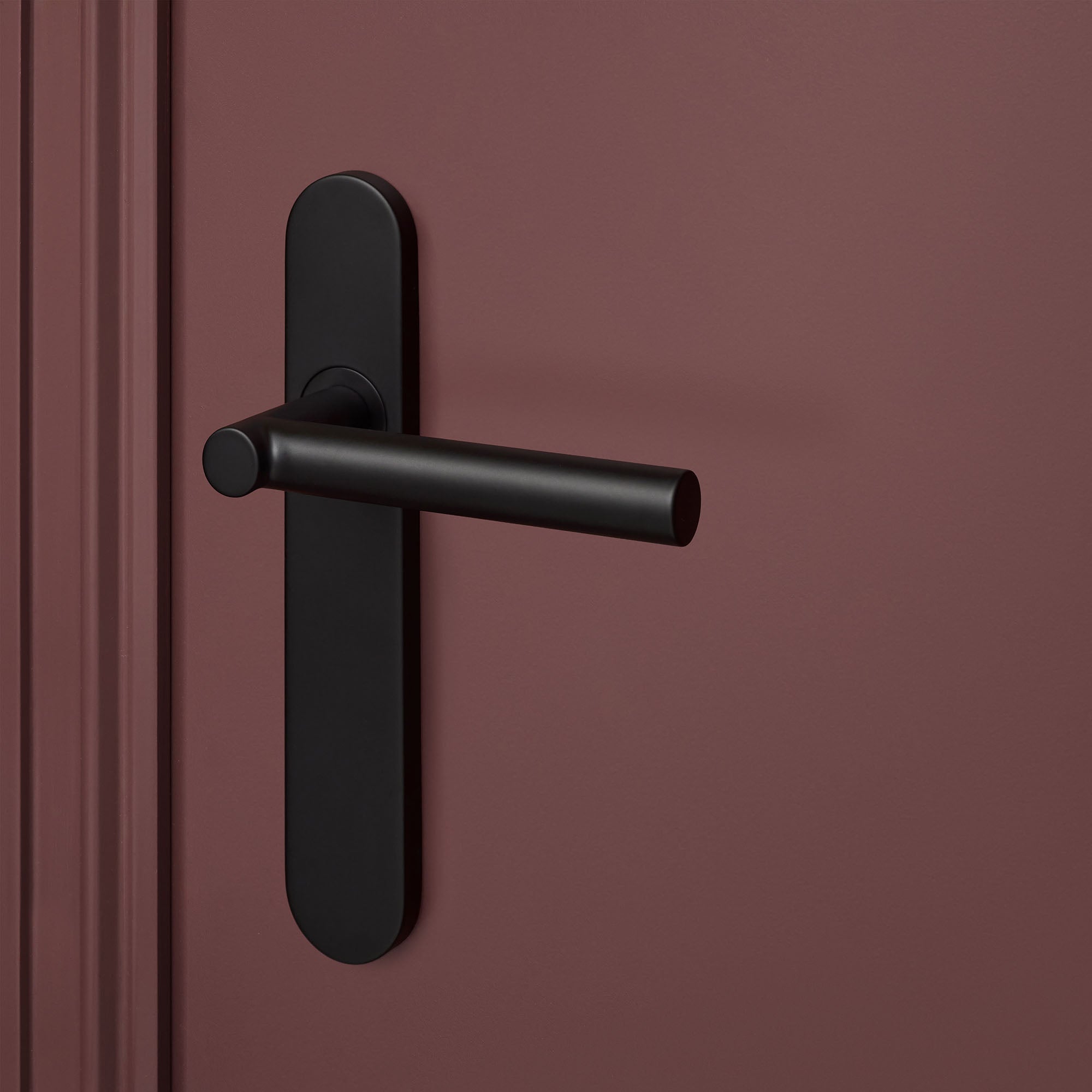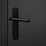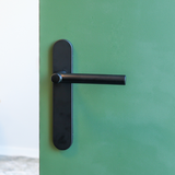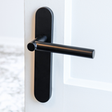 Deze uitvoering is geschikt voor binnendeuren met een standaard slotgat. Het schild sluit strak aan op de deur en werkt oude boorgaten netjes weg. De matzwarte poedercoating is krasvast, kleurvast en eenvoudig te onderhouden.