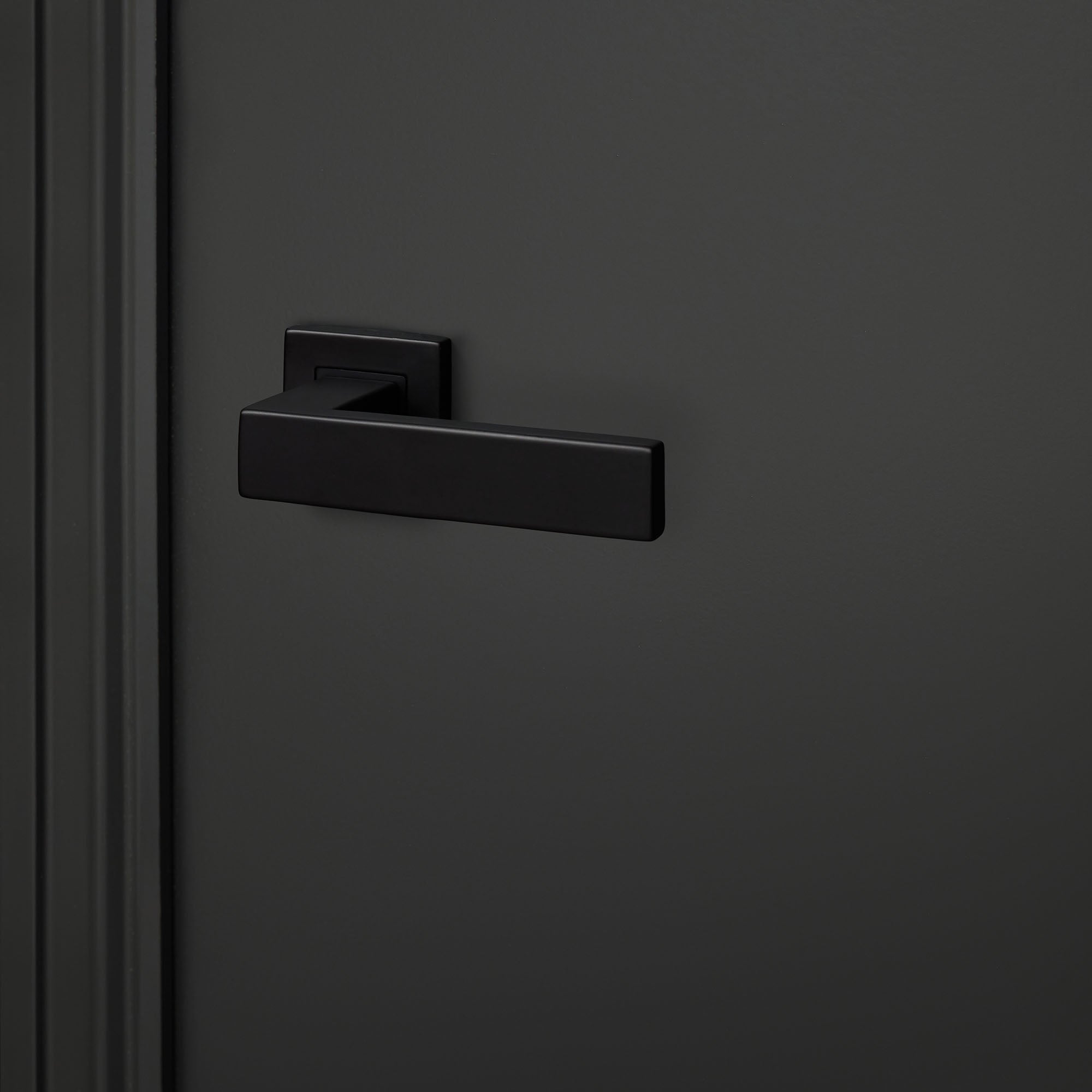 De Imperio deurkruk op vierkant rozet in diep mat zwart is een krachtige deurklink welke een zeer stoere look en feel heeft. Deze zwarte deurklink is de ideale match voor een uitgesproken industrieel interieur waar de matte, robuuste afwerking volledig tot zijn recht komt.