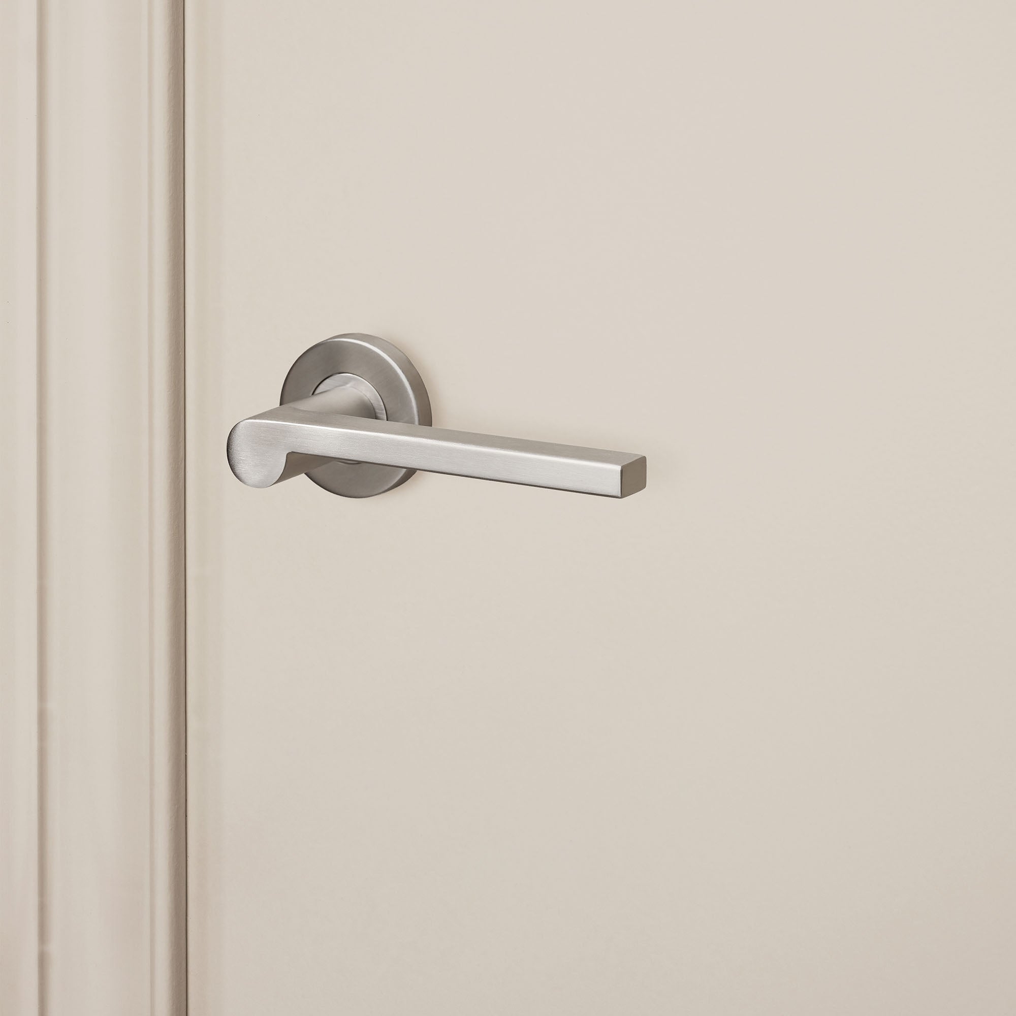 De neutrale, matte glans van het duurzame RVS maakt dit model net zo geschikt voor een strak modern interieur als voor een klassieke of Scandinavische woonstijl. Het deurbeslag is een investering in tijdloze schoonheid.
