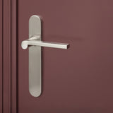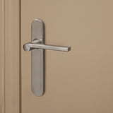 De Caserta deurklink op blind schild in geborsteld RVS is een paradepaardje uit ons assortiment. De vlakke greep met de organische twist wordt extra benadrukt door het toegankelijk afgeronde schild. Ideaal voor binnendeuren zonder slot, waarbij je kiest voor een moderne en verfijnde look.