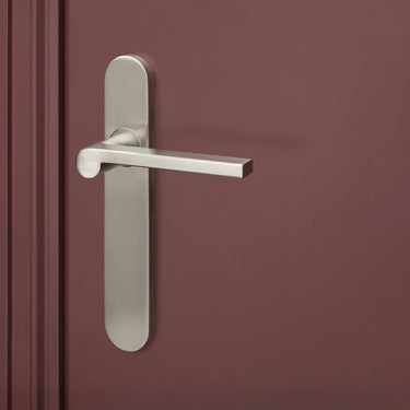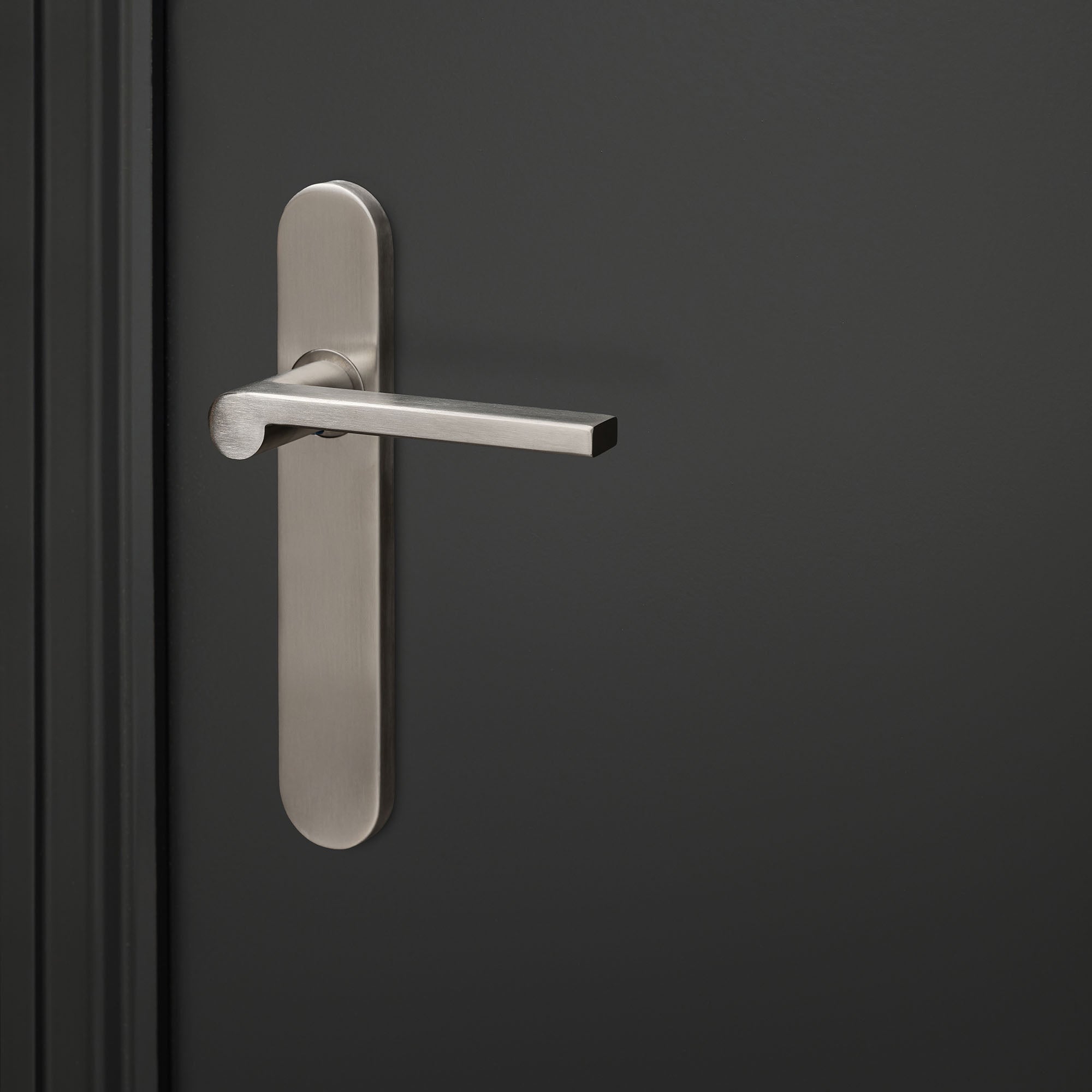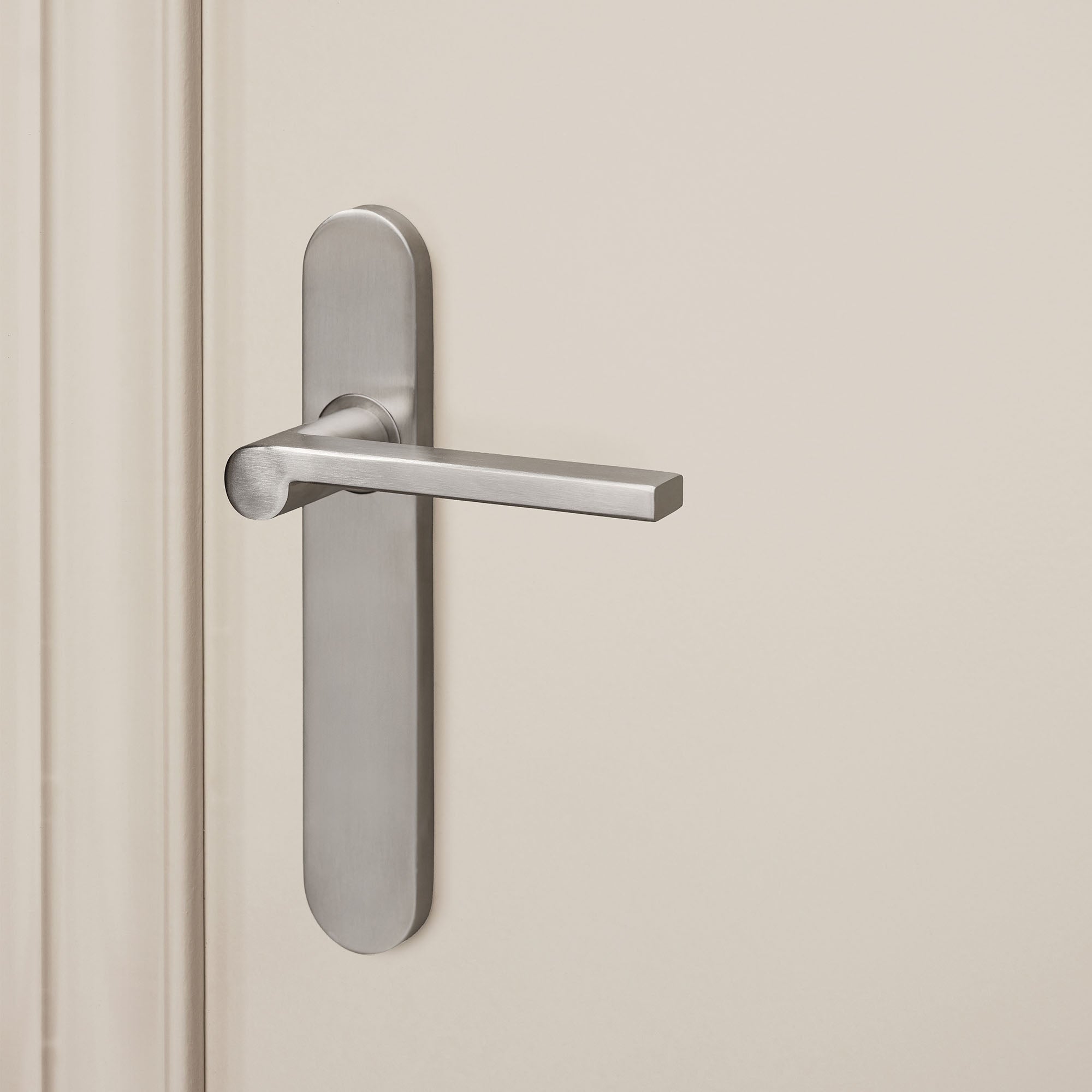 De tijdloze finish van het geborstelde RVS zorgt voor een subtiel, maar aanwezig accent op elke deur. De Caserta deurklink op schild combineert de vlakke, organisch gevormde greep met een stevig schild.