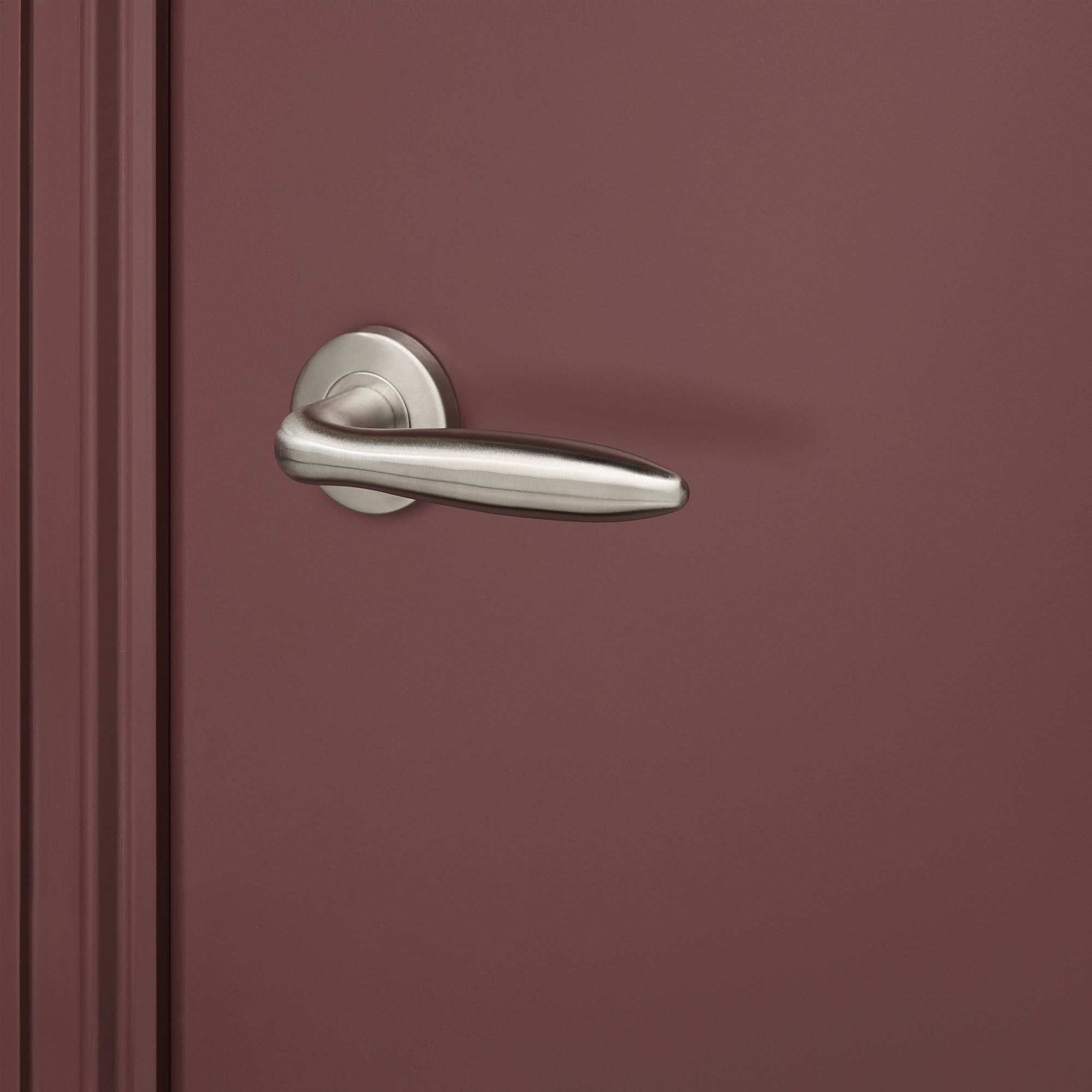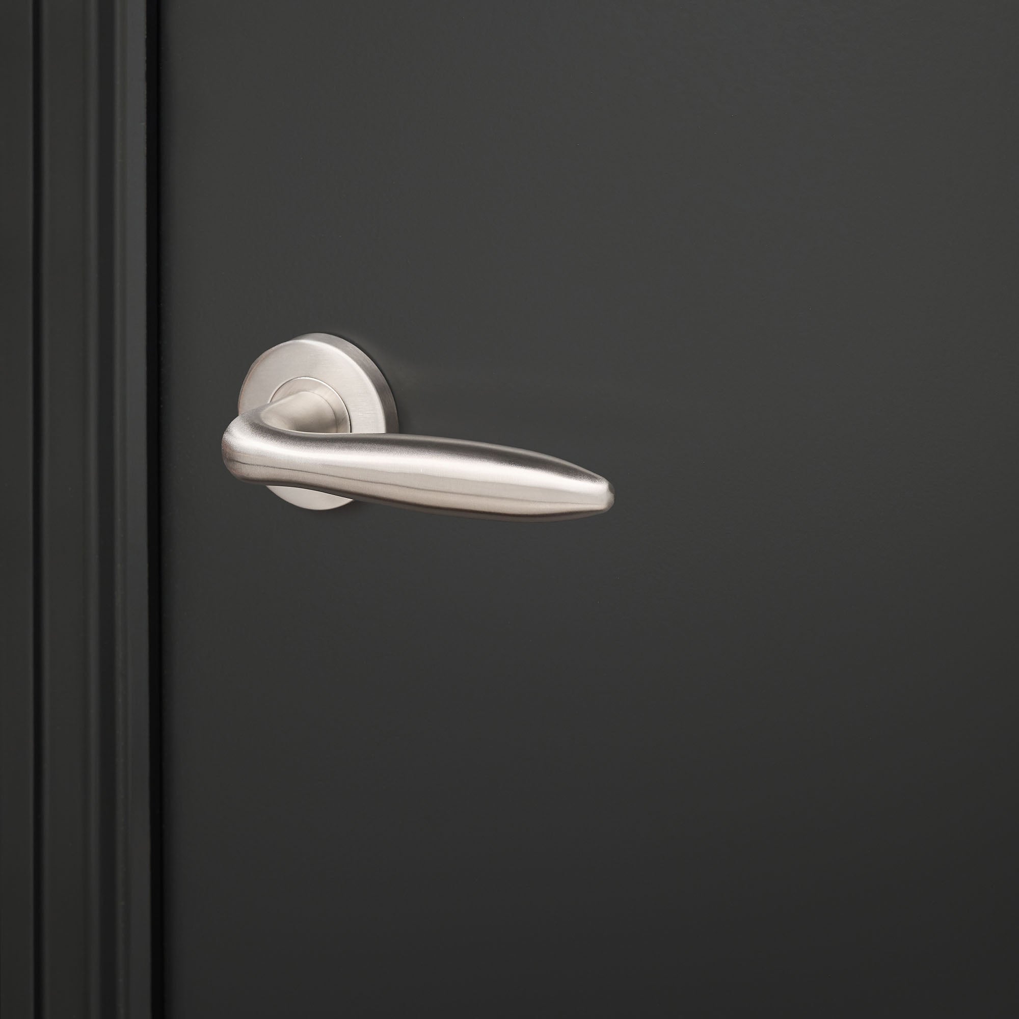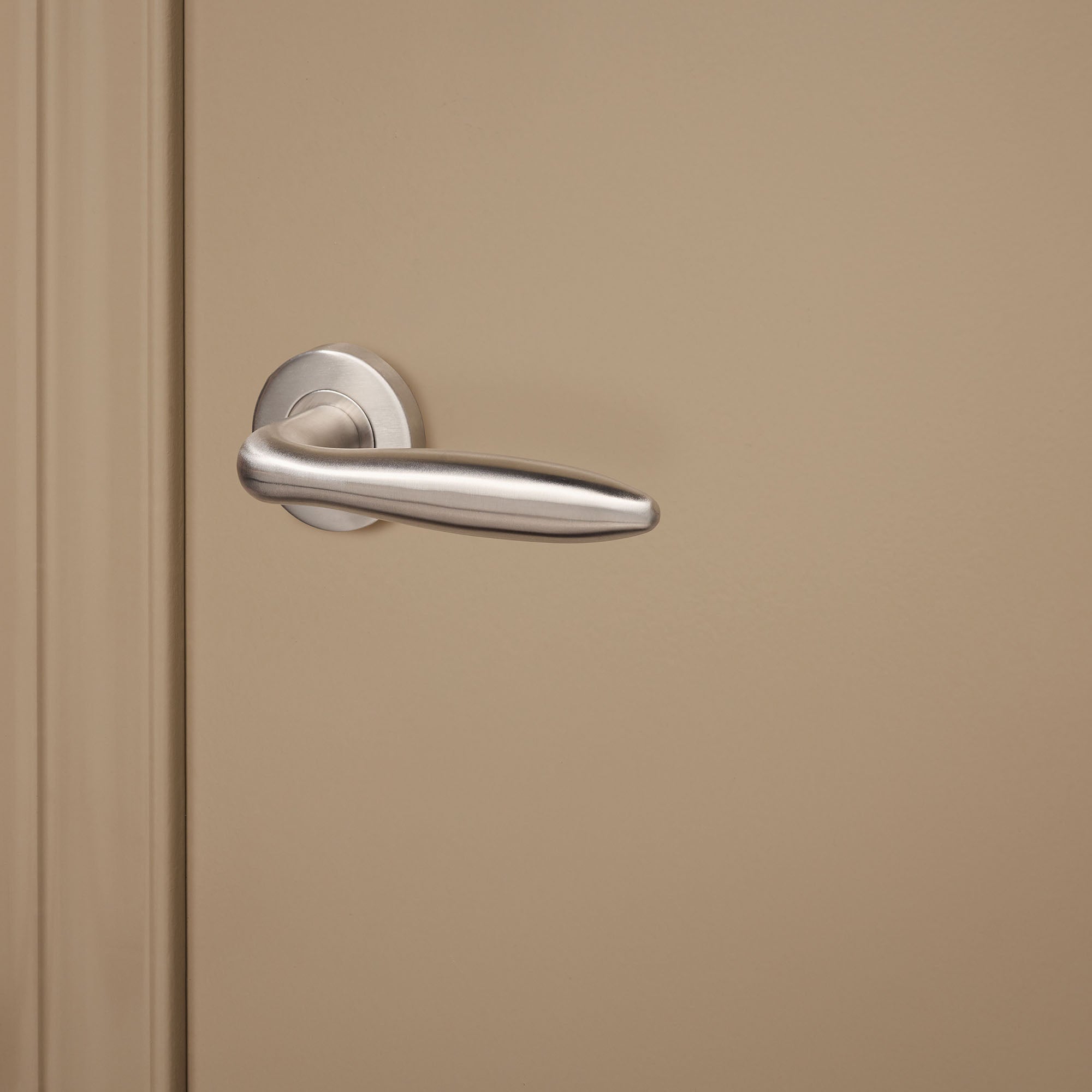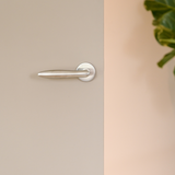 De Pratona deurklink met rond rozet in geborsteld RVS combineert een klassieke vorm met een moderne uitstraling. De elegante, sigaarvormige greep ligt prettig in de hand en geeft elke ruimte een tijdloos accent. Een subtiele blikvanger die luxe en verfijning uitstraalt.