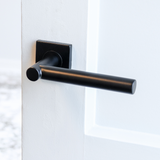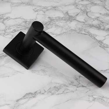 Deze deurklink valt op door het contrast tussen het afgeronde handvat en het vierkante rozet. Dat maakt de Grosetto uniek: een subtiele eyecatcher die rust en balans uitstraalt. De matzwarte afwerking versterkt het moderne karakter en zorgt voor een luxe uitstraling. De klink heeft een strak cilindervormig handvat dat taps aansluit op een robuust vierkant rozet.