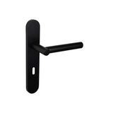 Deze uitvoering is geschikt voor binnendeuren met een slot op 72 mm hart-op-hart (SL72). Het schild dekt oude boorgaten netjes af en sluit mooi aan op de deur. De matzwarte poedercoating is krasvast, slijtvast en eenvoudig schoon te houden.