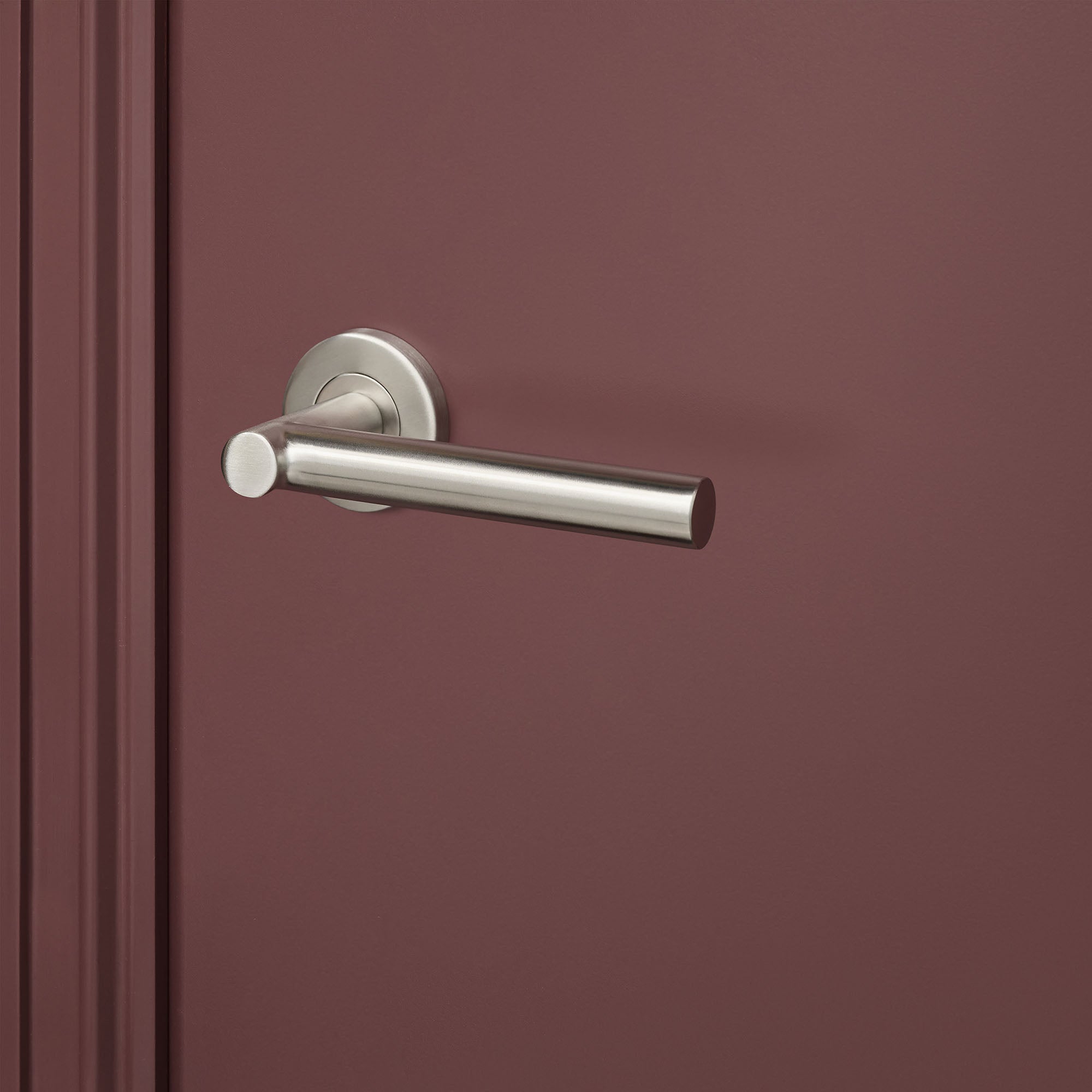 De Grosetto deurklink in RVS met rond rozet is een tijdloze en subtiele toevoeging aan je binnendeur. Het afgeronde ontwerp en de geborstelde afwerking zorgen voor een rustige uitstraling die goed past binnen Scandinavische, Japandi, minimalistische en natuurlijke interieurs.