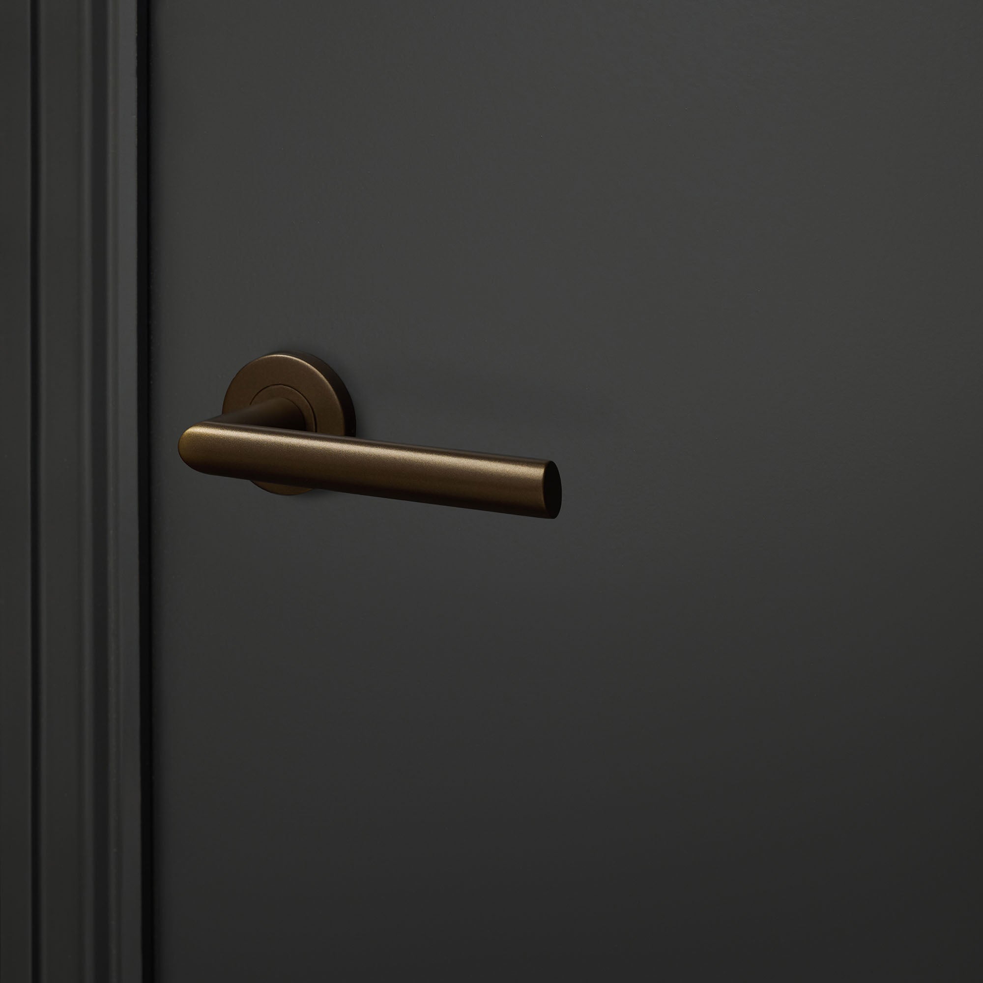 Het ronde rozet geeft de klink een nette, rustige afwerking. De schuine greep ligt prettig in de hand en maakt de bediening intuïtief. Dankzij de combinatie van vorm en materiaal is deze klink niet alleen mooi, maar ook praktisch voor dagelijks gebruik.