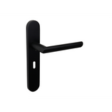 Deze uitvoering past op binnendeuren met een sleutelgat op 56 mm hart-op-hart. Het sleutelgat is mooi verwerkt in het schild, waardoor het één geheel vormt. De matzwarte coating is duurzaam en blijft lang mooi, ook bij dagelijks gebruik.