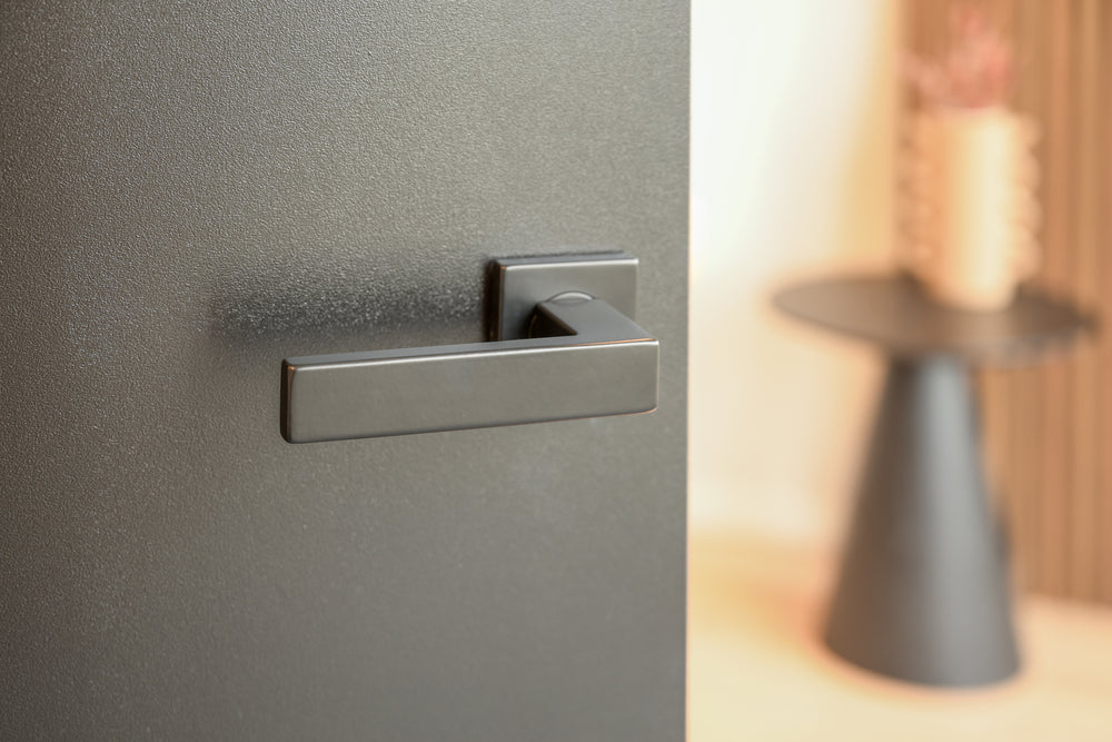 Jouw persoonlijke voorkeur en het type deur bepalen welke uitvoering het beste past. De Imperio serie biedt hierin de nodige flexibiliteit. Voor een uiterst modern en compact effect kun je kiezen voor de variant op een vierkant rozet, wat de hoekige vormen van de vlakke greep extra benadrukt. Heb je te maken met bestaande boorgaten of wil je een groter gebaar maken op de deur? Dan is de uitvoering op een deurschild de perfecte oplossing. Het schild geeft de deur een krachtige, solide uitstraling die de industriële sfeer in jouw woning verder versterkt.
