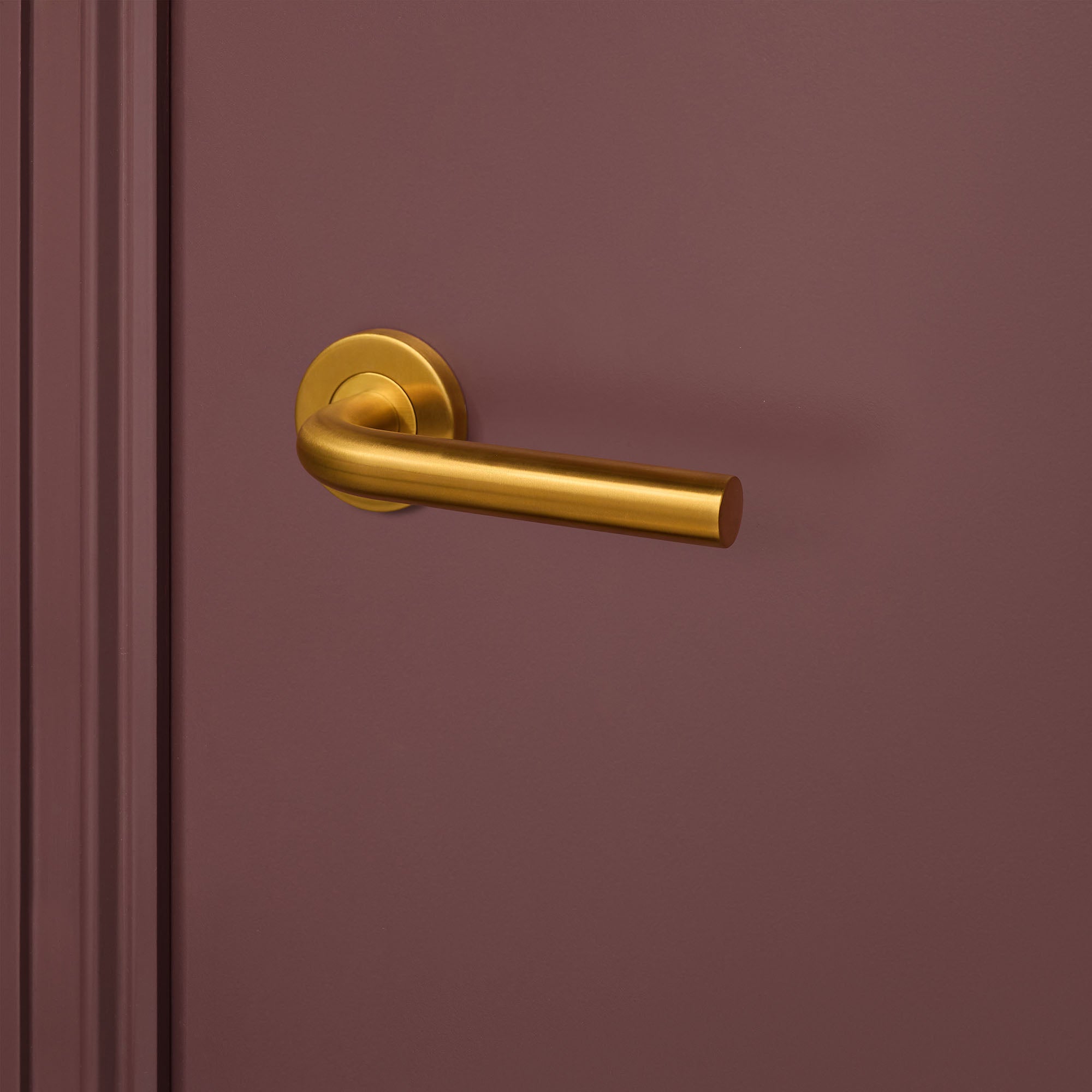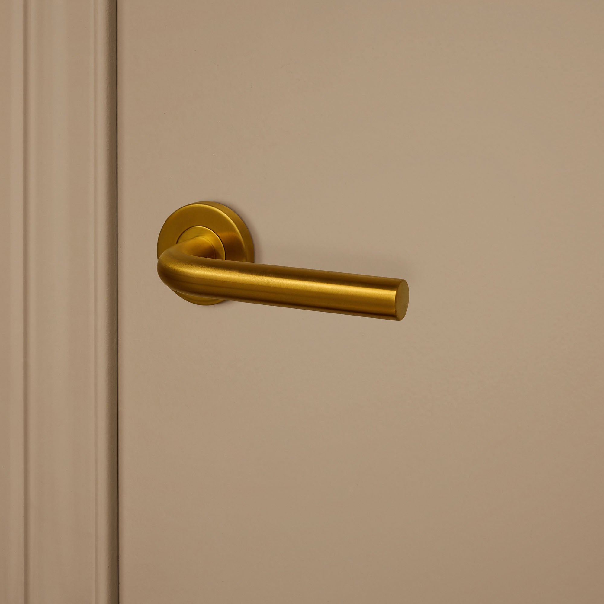 Deze klink voelt als een sieraad voor je deur. Slank, sierlijk en perfect in balans. Het matte goud geeft een subtiele glans die prachtig werkt in natuurlijke lichtinval. Ideaal voor ruimtes die je een verfijnde en stijlvolle touch wilt geven, zoals een elegante woonkamer, een rustige slaapkamer of een sfeervolle hal.