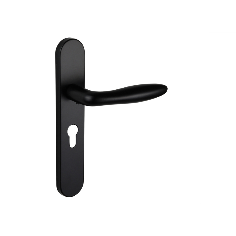 De Pratona deurklink met afgerond schild en PC55 sleutelgat straalt klasse en verfijning uit. De matzwarte afwerking geeft het klassieke ontwerp een eigentijdse touch, terwijl de sigaarvormige greep zorgt voor een zachte, comfortabele uitstraling.