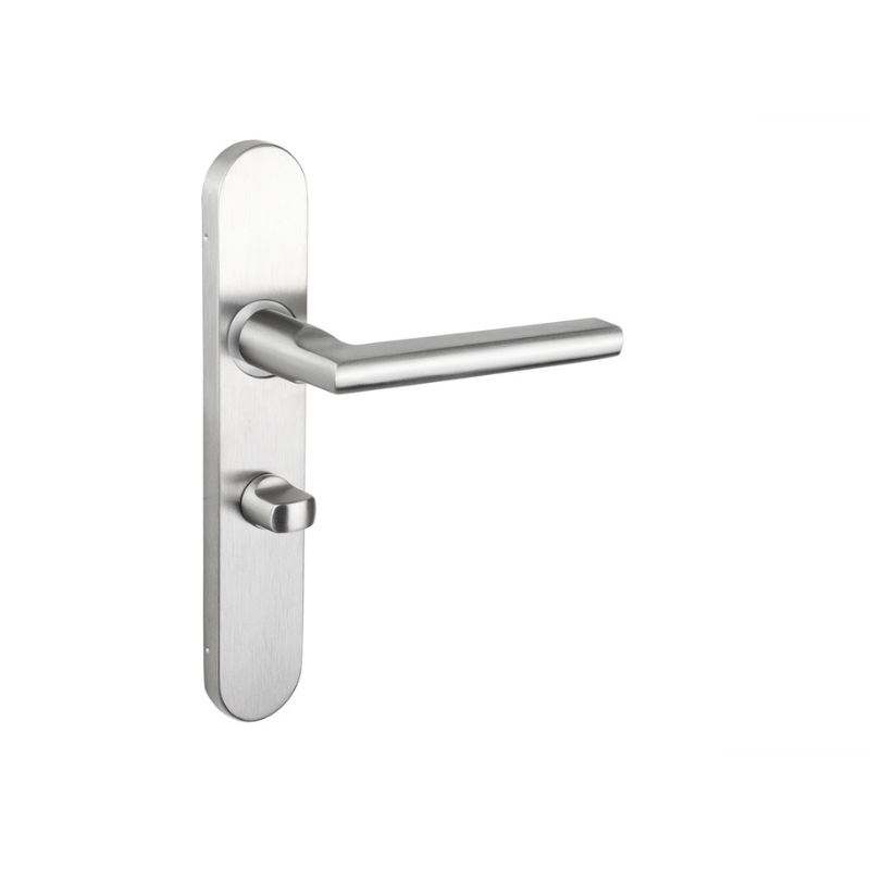 De Teramo deurklink in geborsteld RVS met afgerond schild en WC63/8 badkamersluiting is speciaal ontworpen voor binnendeuren van toiletten en badkamers. De slanke vormgeving in combinatie met het afgeronde schild zorgt voor een rustige, verfijnde uitstraling. De RVS-afwerking geeft een moderne en tijdloze look die in vrijwel elk interieur past.